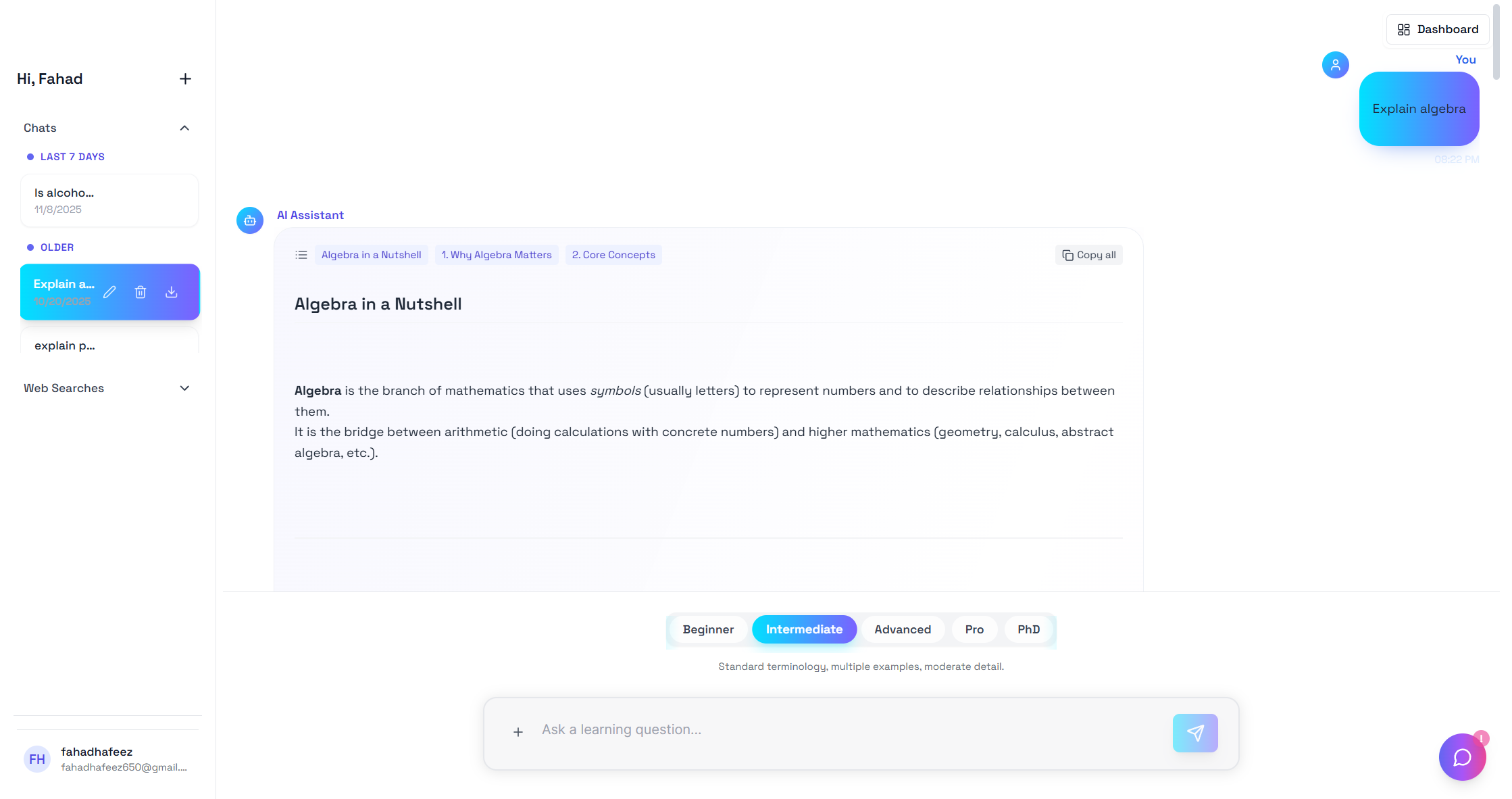 Your 24/7 tutor that adapts to how you learn best. Master any subject with personalized lessons, instant feedback, and a learning path designed just for you.